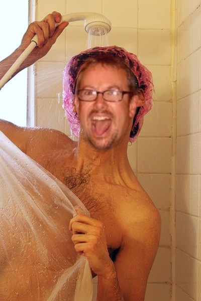 bathroom and asked, “What’s that noise coming from your shower?”